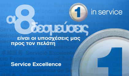 μεταξύ όλων των εταιριών. Ποιότητα στην παροχή υπηρεσιών είναι κάτι παραπάνω από αυτό που παρέχουμε, είναι το πώς σκεφτόμαστε και ενεργούμε. Δεν είναι απλά «φτιάχνω κάποιο πρόβλημα» ή «πραγματοποιώ την προβλεπόμενη συντήρηση ρουτίνας», είναι το «χαμόγελο» στη φωνή στο τηλέφωνο, η άμεση ανταπόκριση σε ένα αίτημα και η συνεχής προσπάθεια για βελτίωση. Μάθετε περισσότερα για το Service Excellence και τις 8 δεσμεύσεις μας προς τον πελάτη. |